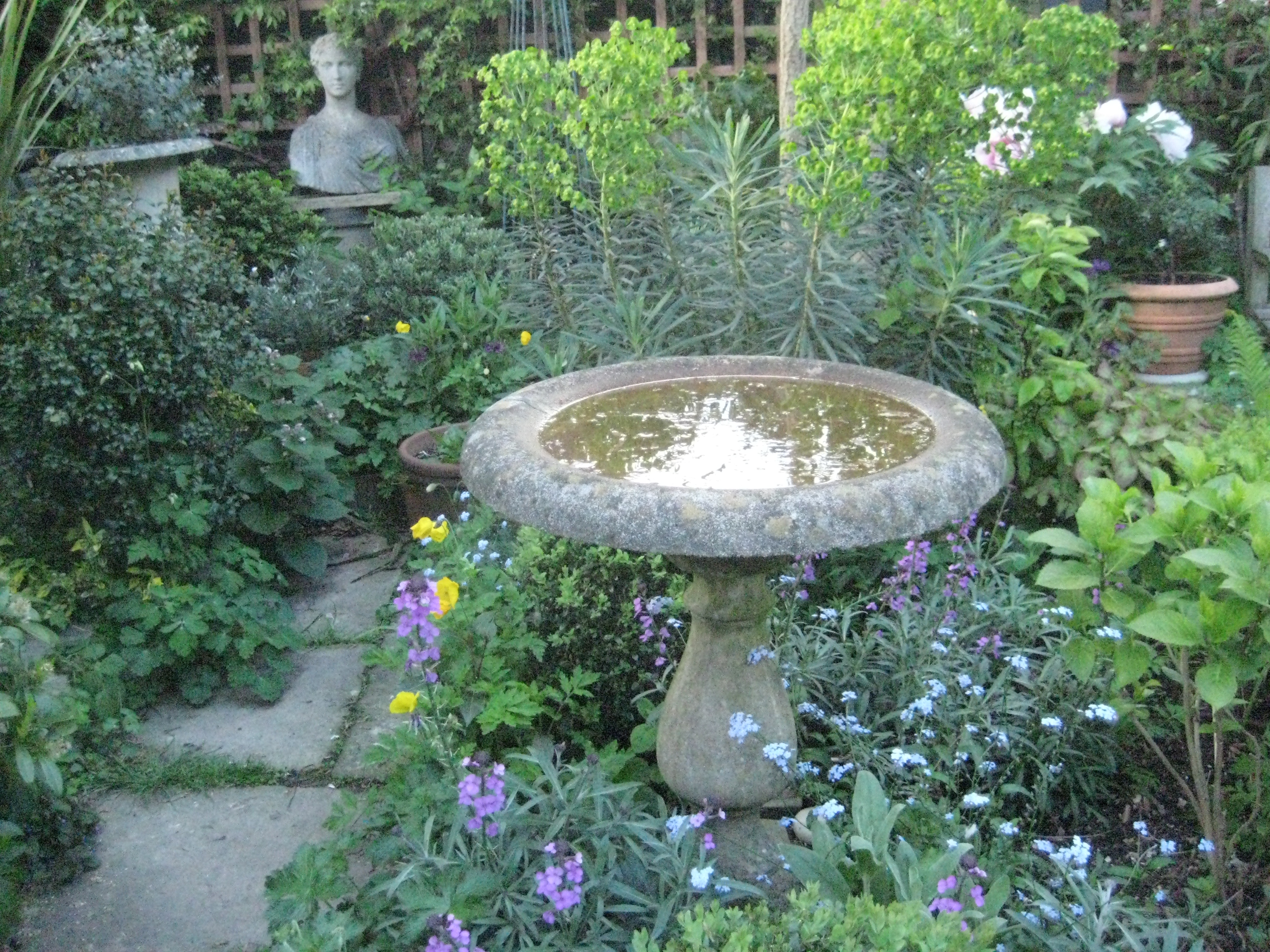 The bird bath – saw a speckly thrush yesterday