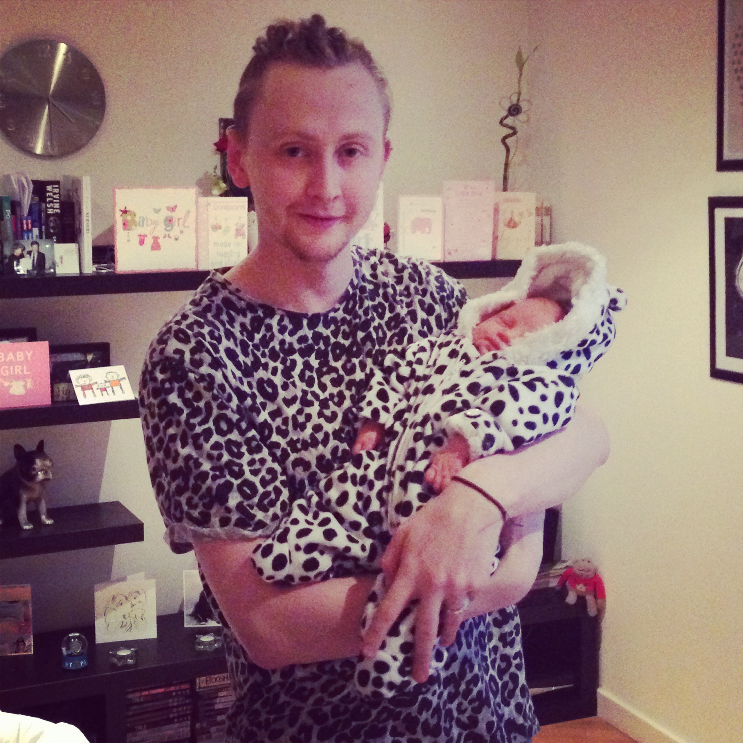 How good is this – my nephew Tom and his daughter in matching dalmatian? or more likely leopard or some sort of cat – not real fur of course before I get any cross comments. Her name is Luna.